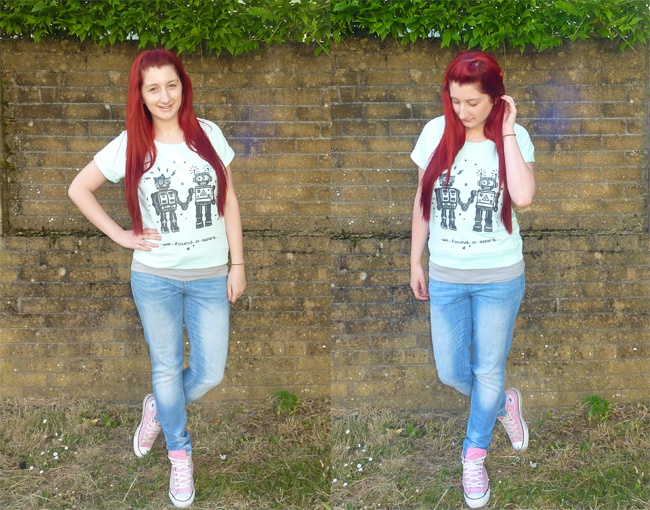 How Cute is this Robot Print T-Shirt? I spotted it ages ago in the Primark Lounge section and knew that I wanted it to wear as an everyday Tee not to sleep in as it was far too awesome. The Print is so lush, its 2 Robots holding hands with the words 'We..Found...A..Spark..' underneath the print. It was £5 but then last week when I was browsing my local Primark it was on a sale rack for £1!!! I couldn't leave it there for that!